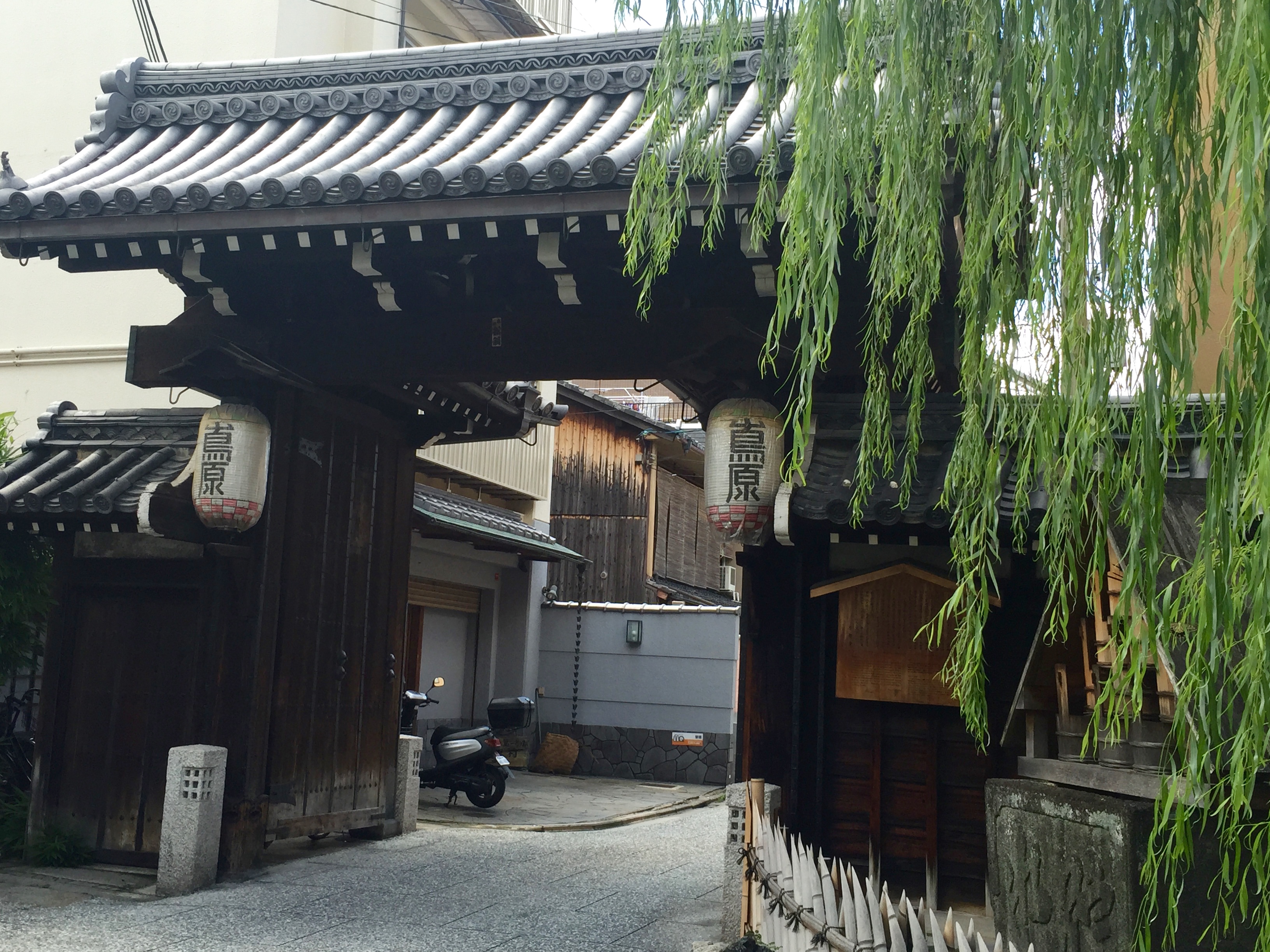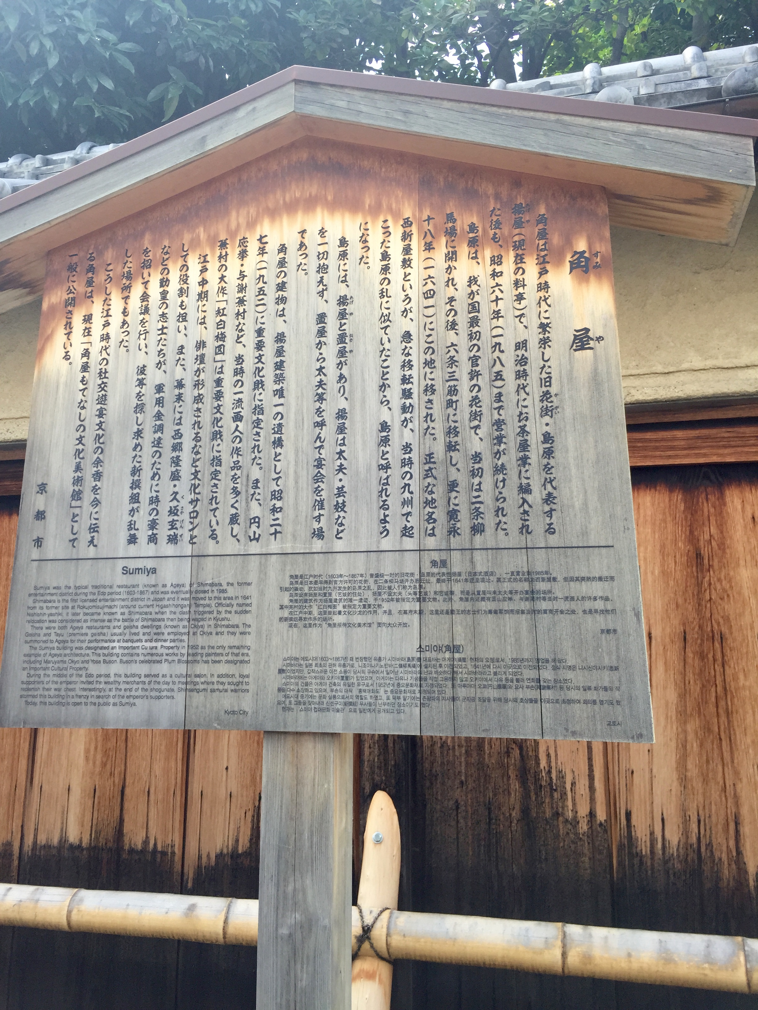 島原では1時間しかお昼休憩がなくて(お手洗いが1ヶ所なので余計にお店を出るまでに時間を要する)。本当は無理しないで徒歩1分くらいの場所にある島原の大門だけを見学しに行けば良かったのだけど、小走りで輪違屋と角屋を見に行きました。