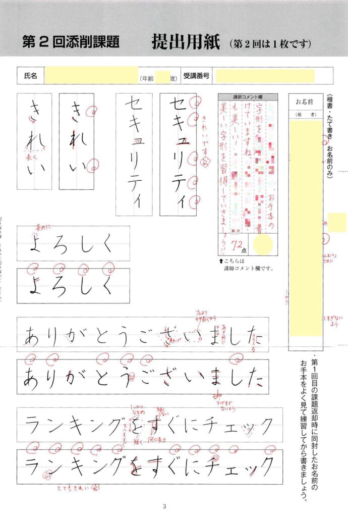 本部に課題が到着したのは16日、その1週間後には添削された課題が返却されました。