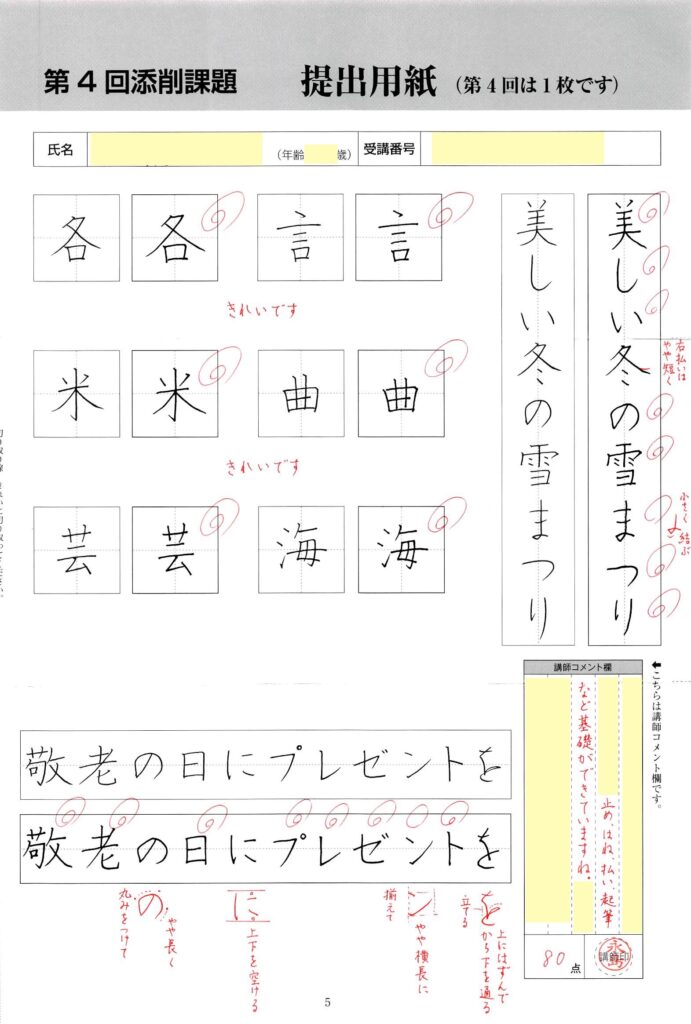 4回目の課題終了後に、テキスト3(楷書②)に入ります。