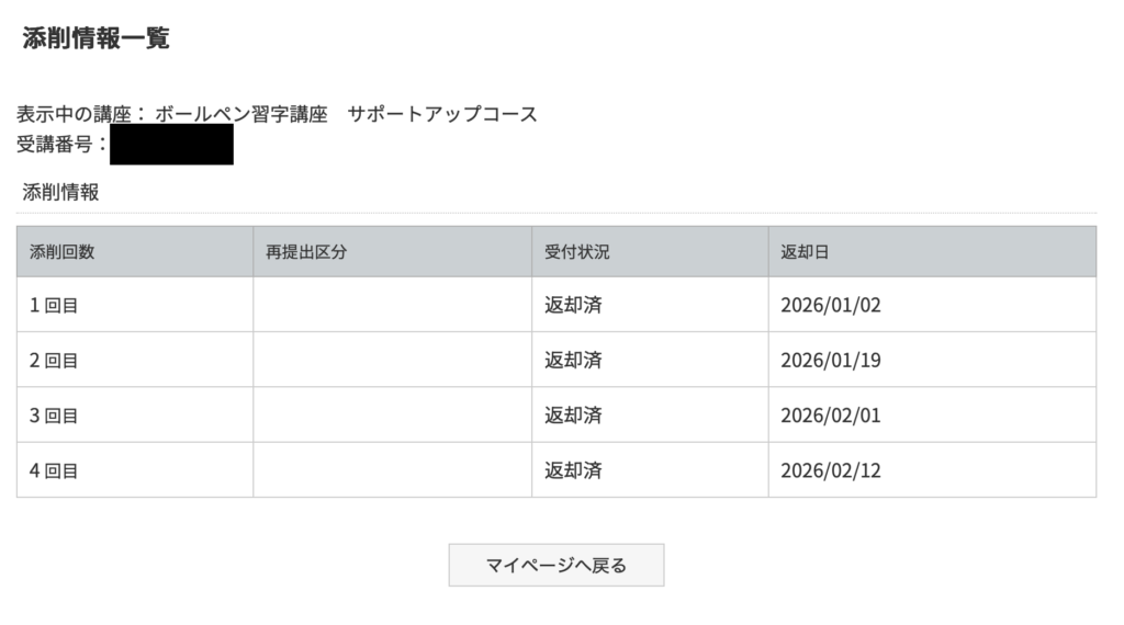 公式サイトに会員登録すると、受講講座や添削状況を確認できることを知りました。