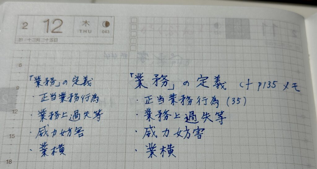 こちらはほぼ日手帳に書いたメモ。