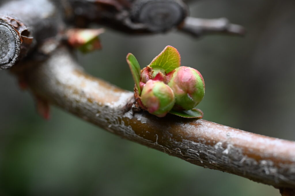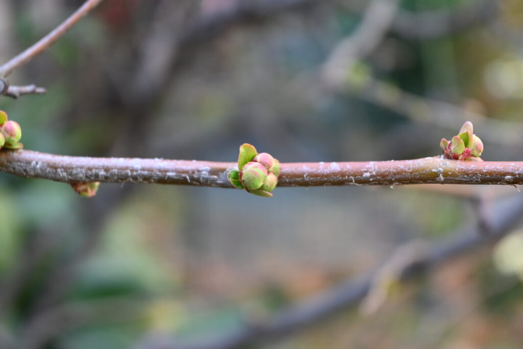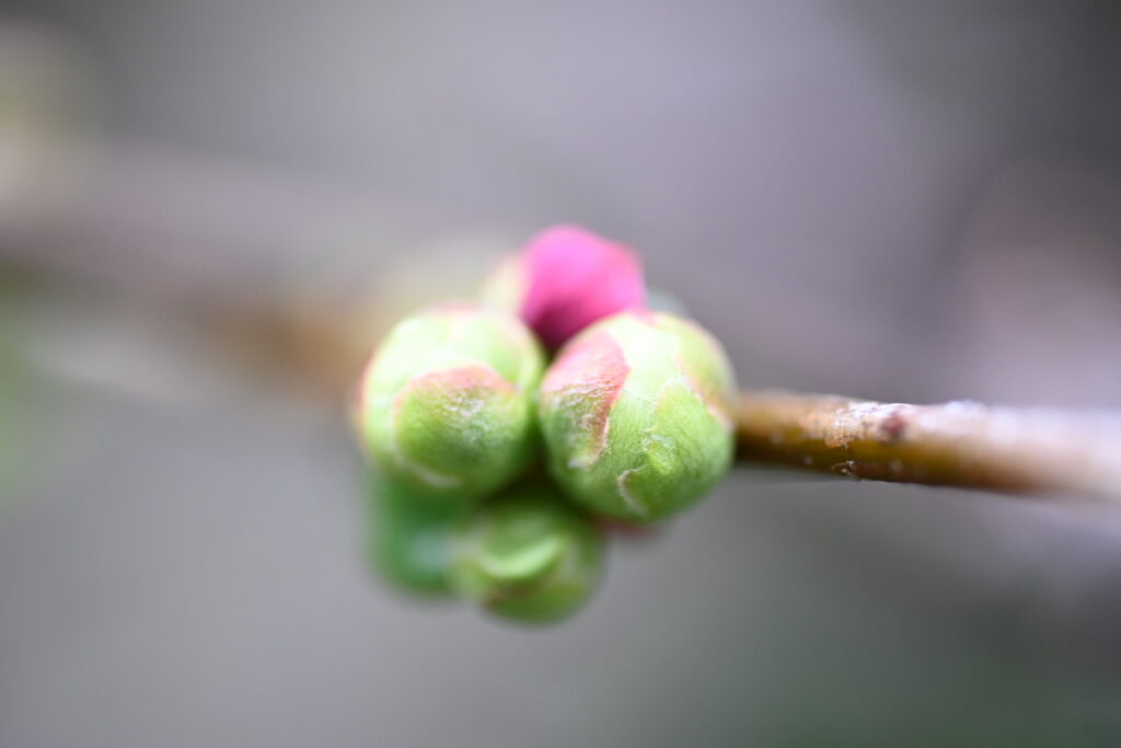 どんなに高く手を上げても、マイクロレンズでの接写ができる範囲に花が残っていなかったので、蕾がかなり大きくなった隣の白梅を撮ることに。