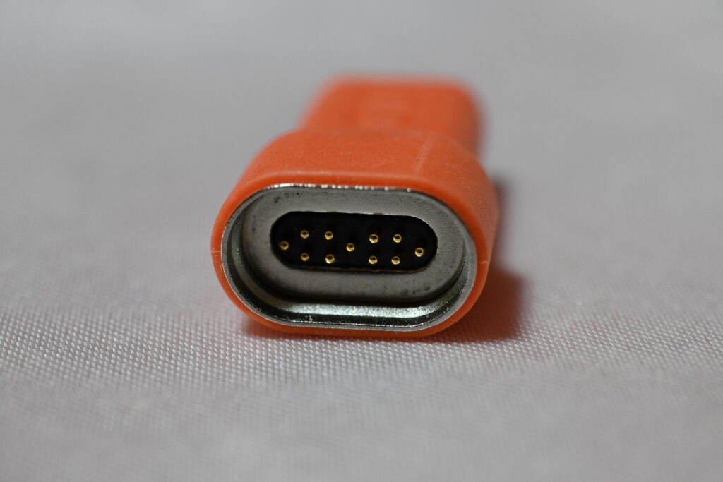 そんなに小さいものはないですが、めちゃくちゃ便利なマグネット式のアダプターと一緒に使う端子だけは、iPhoneでも撮れなかったくらい小さい接点が並んでいます。